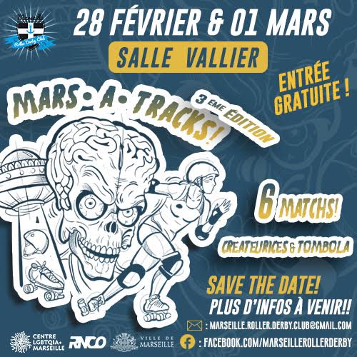 Le MRDC organise la troisième édition du Mars à Tracks ! Un weekend de Roller Derby les 28 février et 1er mars au Gymnase Vallier.