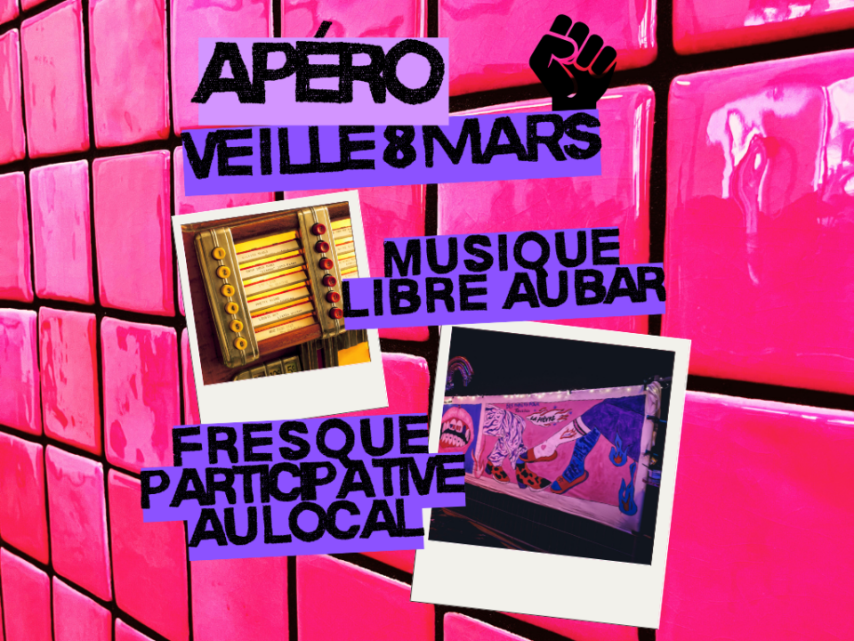 Après la manif du 7 mars, et avant de remettre ça le 8 mars, retrouve nous au Centre pour un apéro chill et convivial 💜