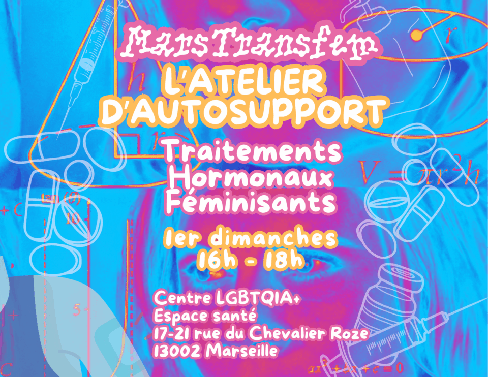 On te propose donc de venir échanger dans un atelier animé par et pour des meufs trans au centre LGBTQIA+, dans un cadre de réduction des risques, d’éducation thérapeutique et sans professionnel de santé.