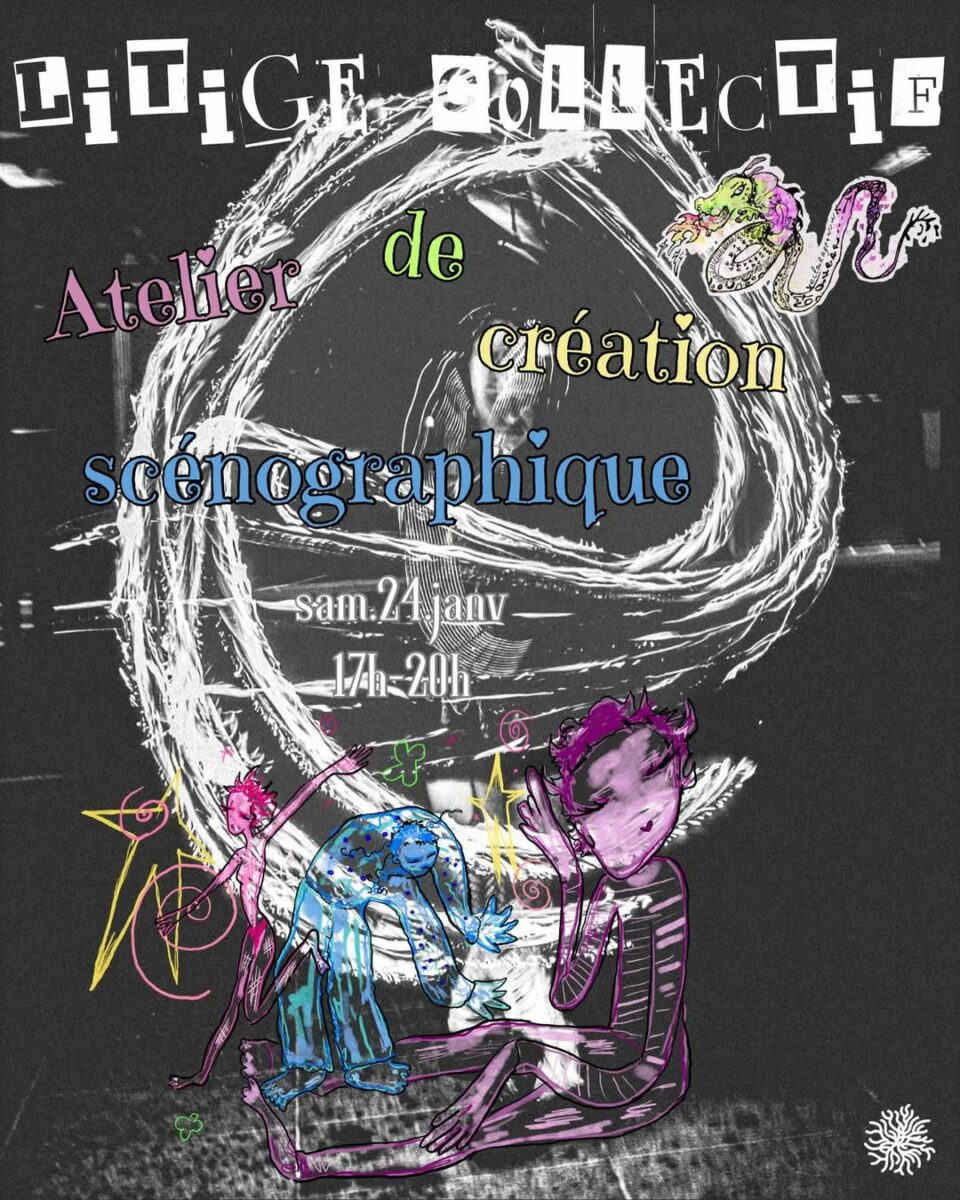 Litige, collectif Marseillais naissant, vous propose un atelier participatif dans le but de créer une scénographie par le biais de divers médiums plastiques et numériques (Décor, mapping, photos/vidéos numériques, sculptures, dessins, collages…)