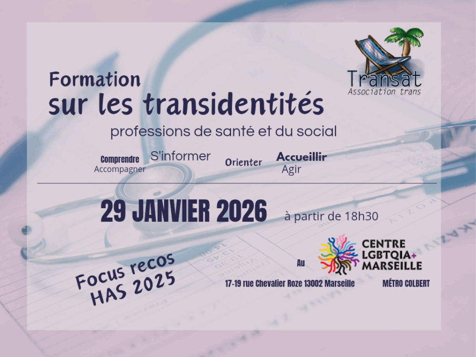 L’association Transat vous propose une formation sur l’accompagnement médical des personnes trans, pour tous les professionnels de santé, du social et du médico-social.